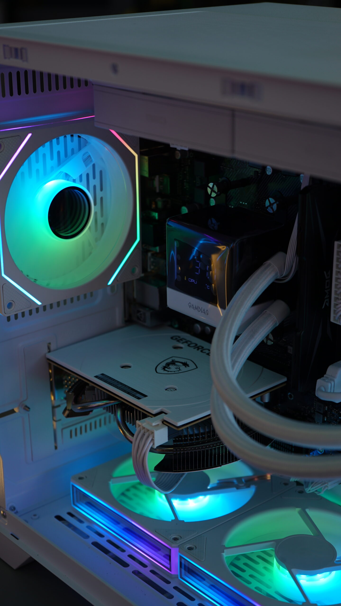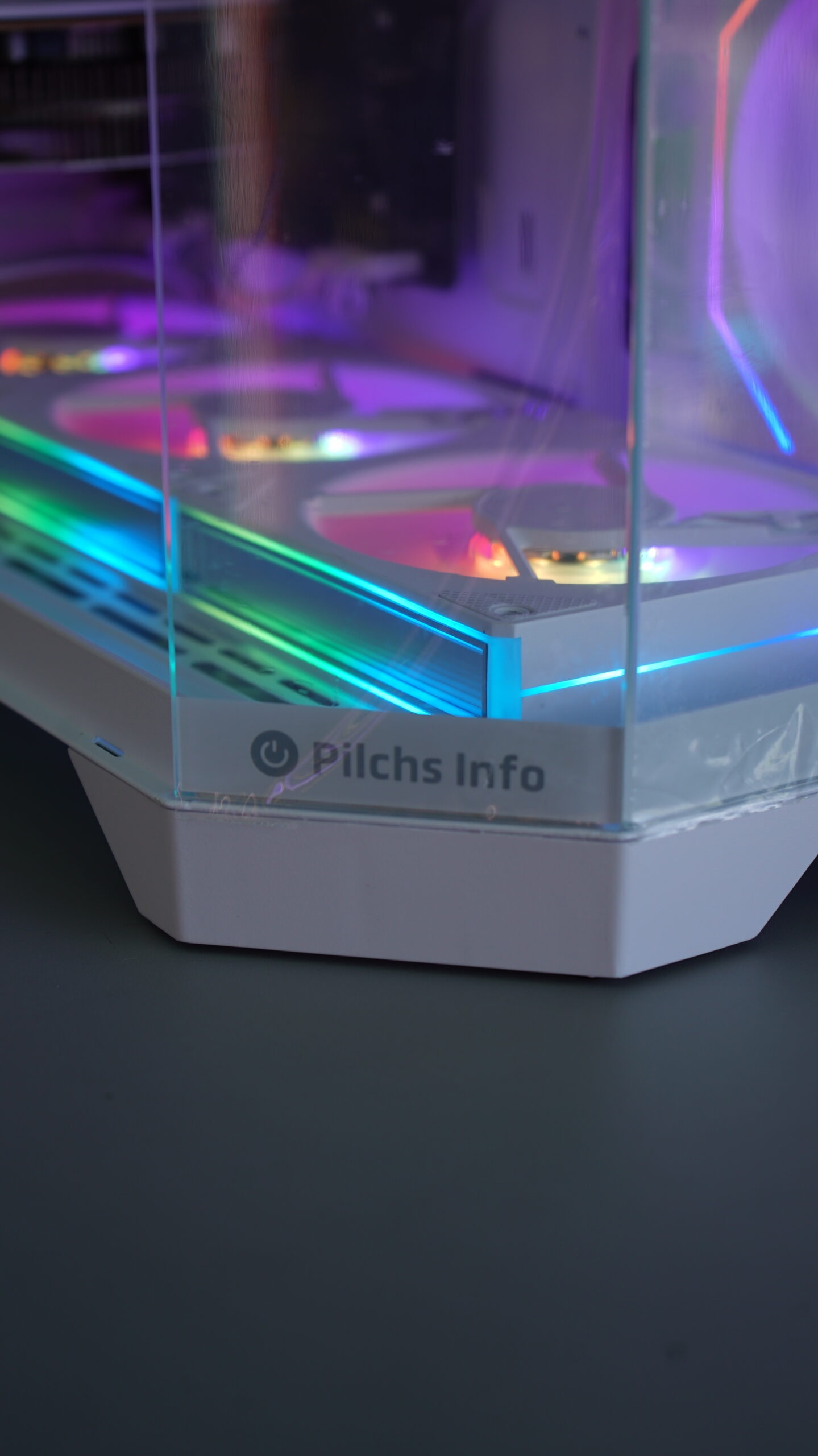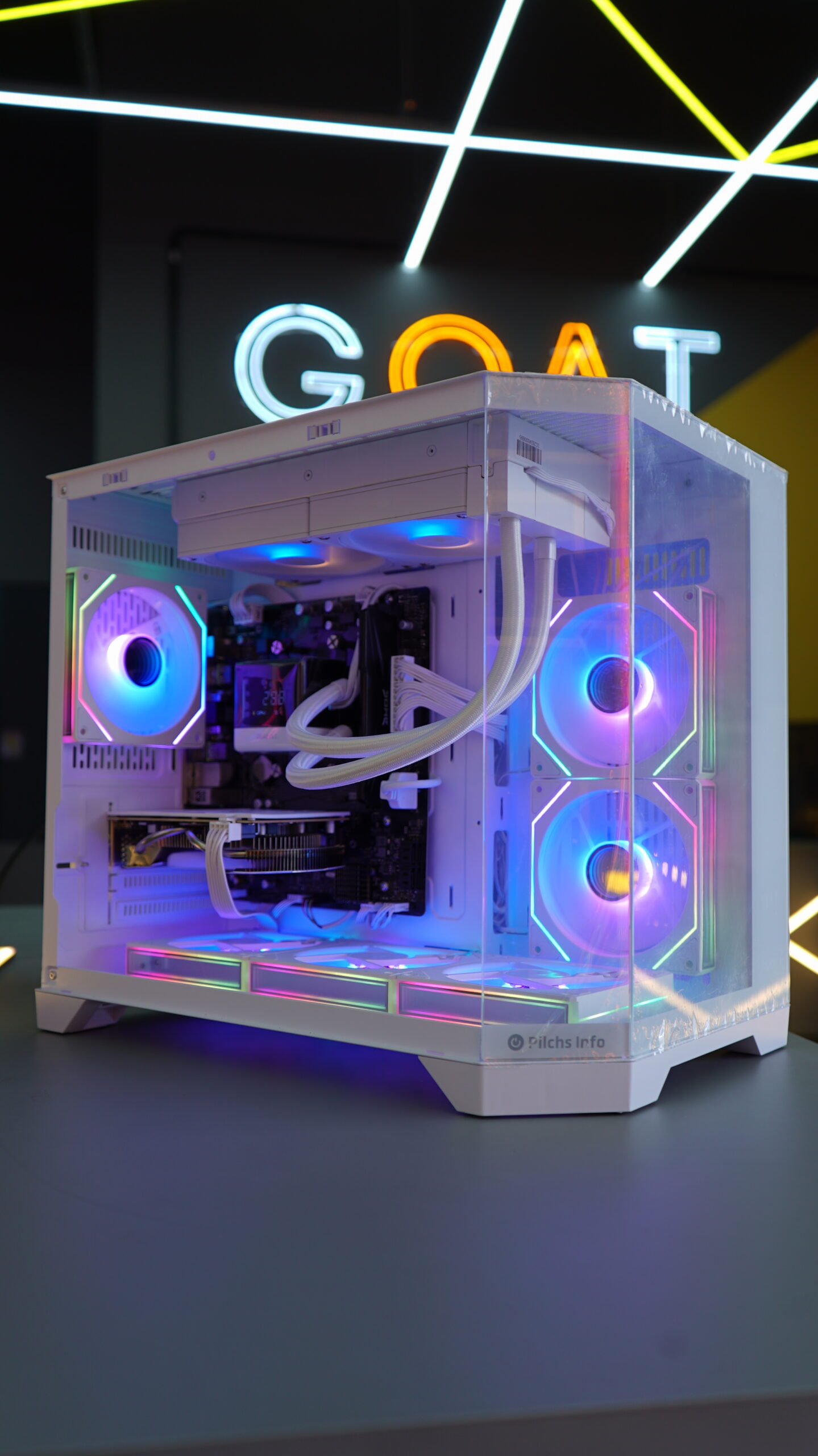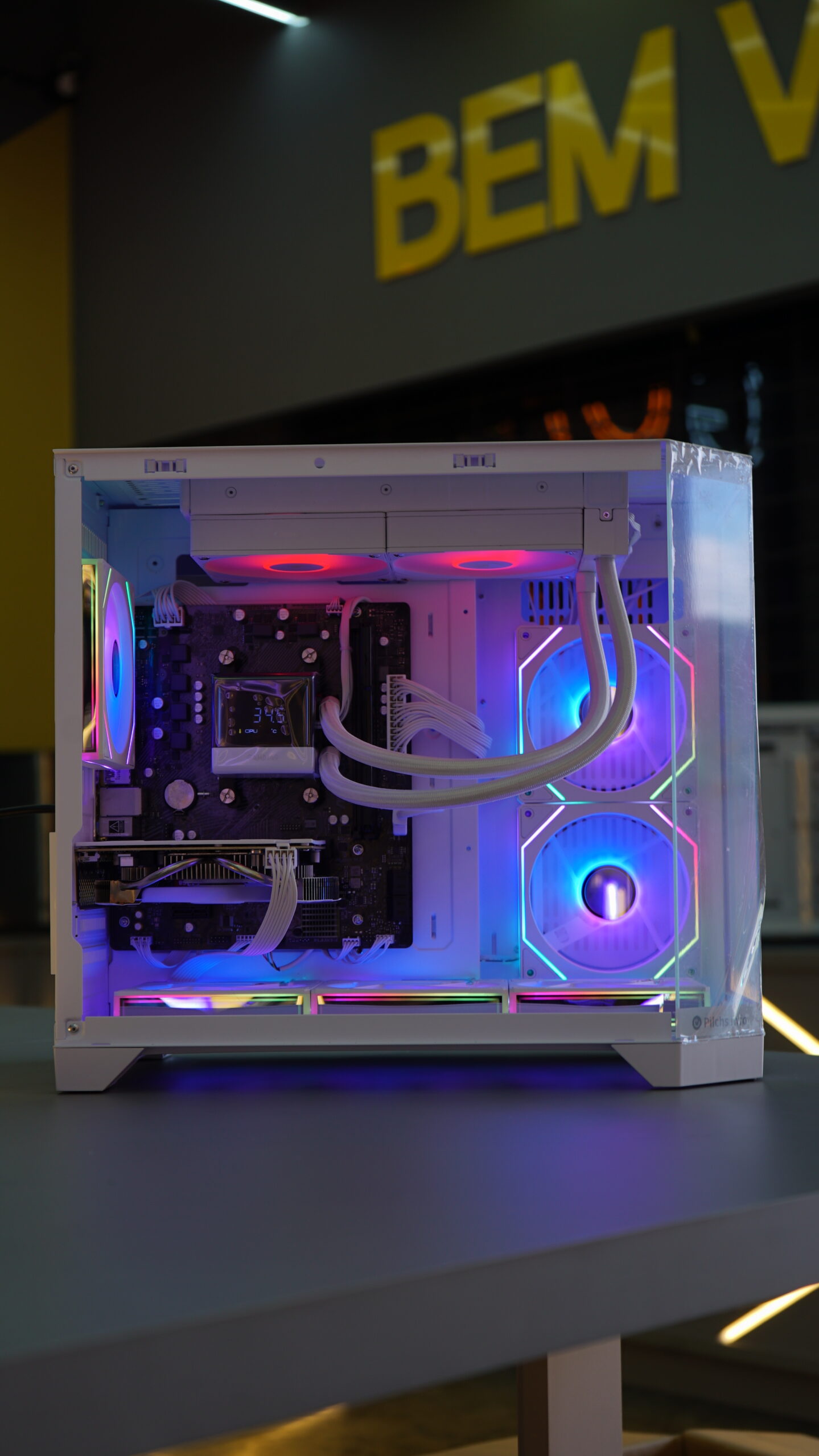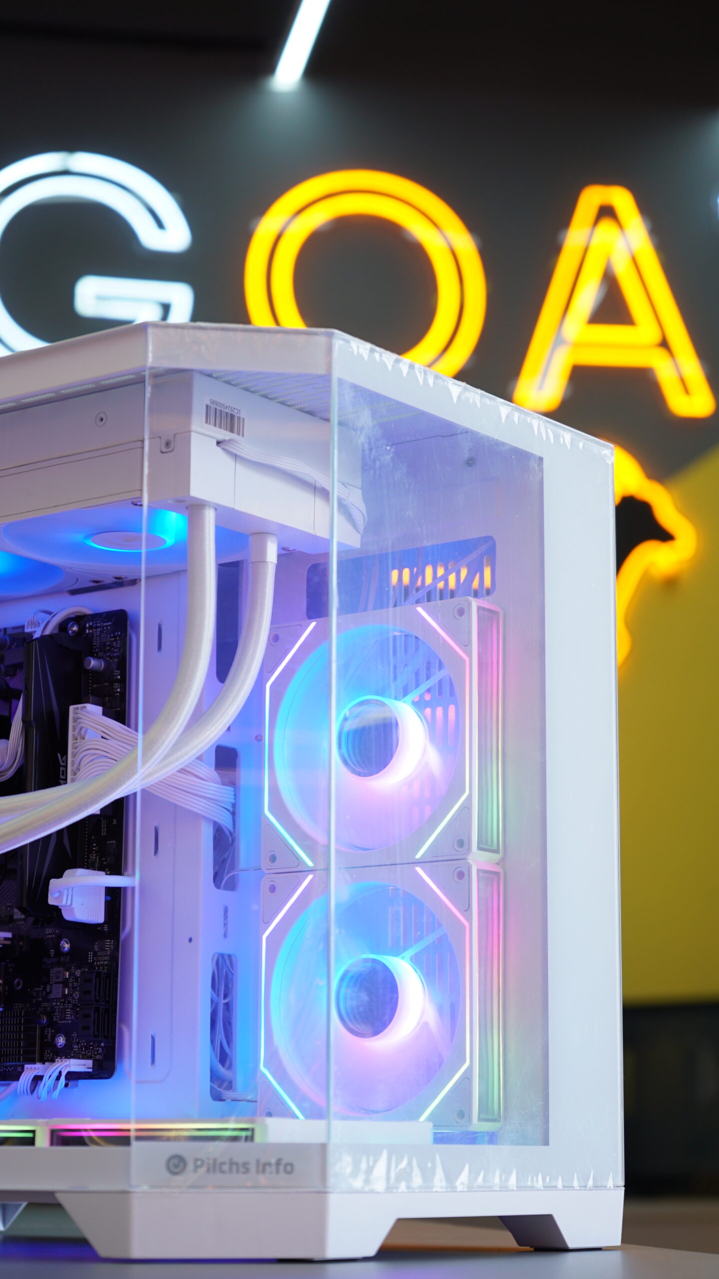 - Gabinete: Pilchs LKT010 Branco (Aquário) — design clean, moderno e elegante com painel de vidro temperado. Um setup que foge completamente do padrão caixa preta.