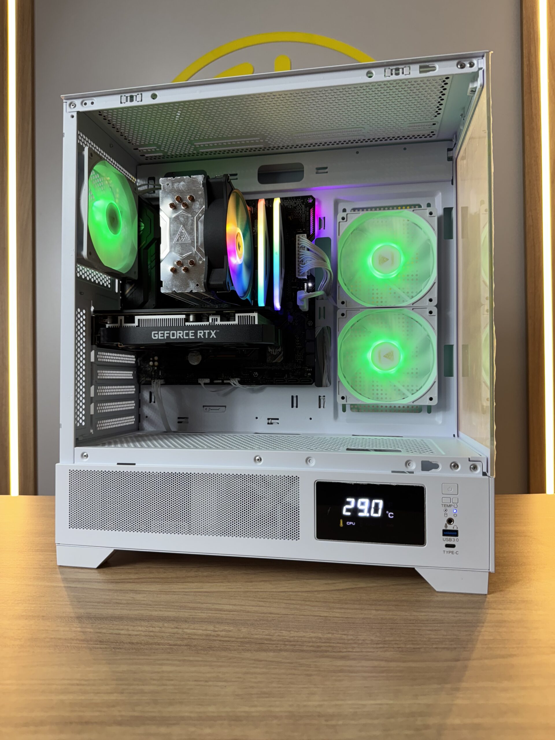 Em 1080p, garante boa fluidez em jogos competitivos como CS2 e Valorant, além de desempenho estável em títulos populares como Fortnite e GTA V em qualidade média a alta.